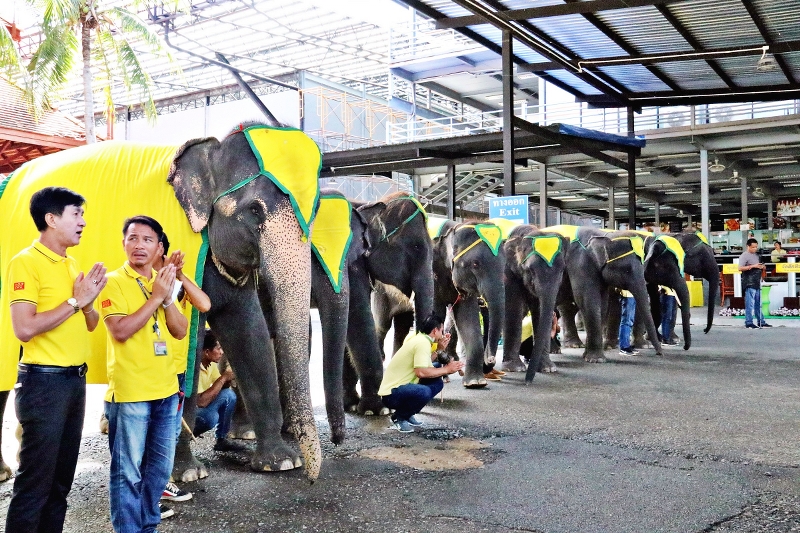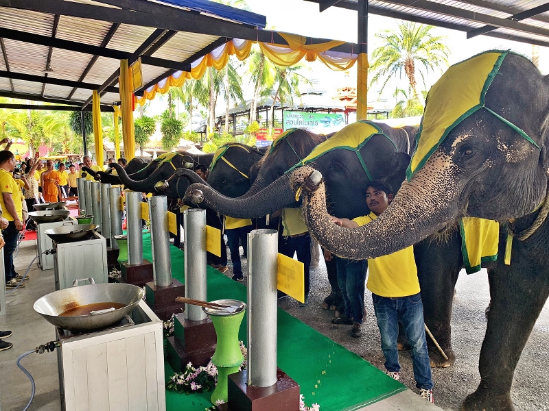 โดยภายในงาน ได้มีน้องช้างจำนวน 9 เชือกร่วมหล่อเทียน ประกอบด้วย พังตรุษจีน,พังคอหญ้า ,พังชมพู่ , พังโจโจ้ ,พังรัฐธรรมมนูญ ,พลายยิ่งรวย,พลายตะวันฉาย ,พลายมีนา และพังเพชรพัทยา ก่อนจะนำเทียนไปถวาย ให้แก่ 9 วัด ได้แก่ วัดญาณสังวรารามวิหาร,วัดสัตหีบ,วัดสามัคคีบรรพต,วัดนาจอมเทียนวัดอัมพาราม,วัดบางเสร่คงคาราม,วัดเขาคันธมาทน์,วัดหนองจับเต่า และวัดทรัพย์นาบุญญารามเพื่อเป็นกุศลทานตามความเชื่อ ในวันที่ 20 กรกฎาคม 2562