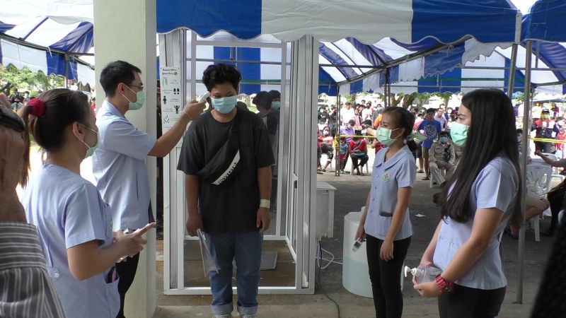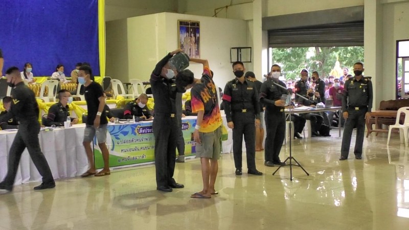 ขณะที่หน่วยคัดเลือก ก็งัดมาตรการเข้ม ควบคุมโควิด-19 โดยก่อนทุกคนผ่านจุดคัดกรอง ทั้งตู้พ่นน้ำยาฆ่าเชื้อ การตรวจวัดอุณหภูมิ ต้องล้างมือด้วยเจล และ ต้องสวมหน้ากากอนามัย และเว้นระยะห่าง ส่วนชายไทยที่ต้องเกณฑ์ทหาร ก็ต้องตรวจสอบสภาพความสมบูรณ์ของร่างกาย เพื่อเข้ารับการตรวจคัดเลือกทหารกองเกิน ซึ่งในวันนี้ ต้องการยอดส่งเข้ากองประจำการ จำนวน 54 คน โดยมีผู้ที่ต้องทำการจับใบดำใบแดง ทั้งหมด 135 คน และมีผู้ขอผ่อนผัน จำนวน 135 คน สมัครเป็นทหาร จำนวน 19 คน ซึ่งบรรยากาศทั่วไป เป็นไปด้วยความสงบเรียบร้อย โดยมีบรรดาพ่อแม่พี่น้อง ลูกหลาน รวมไปถึงเพื่อน ๆ ตามมาเชียร์ให้กำลังใจกันอย่างคึกคัก