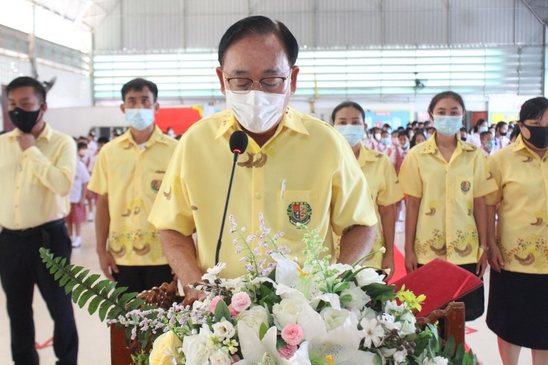 ในการนี้ ดร.บัณฑิต ถวายเครื่องราชสักการะ เปิดกรวยถวายพระพร และได้นำคณะผู้บริหาร คณะครู และนักเรียนถวายพระพรชัยมงคลพระบาทสมเด็จพระเจ้าอยู่หัวให้ทรงสถิตเป็นมิ่งขวัญชาวไทยตราบนานเท่านาน