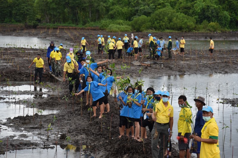 จ.จันทบุรี – นำจิตอาสาพระราชทาน นักเรียน นักศึกษา ประชาชน เกษตรกรชาวประมงพื้นบ้าน ร่วมกิจกรรมจิตอาสา เราทำความดี เพื่อชาติ ศาสตร์ กษัตริย์ ปลูกป่าชายเลนเฉลิมพระเกียรติฯ อนุรักษ์ทรัพยากรธรรมชาติและสิ่งแวดล้อม ตามโครงการปลูกป่า และป้องกันไฟป่า เฉลิมพระเกียรติฯ