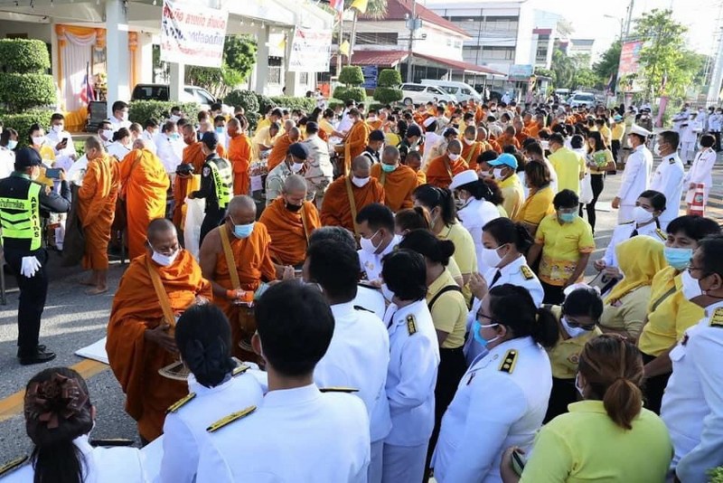 ชาวพัทยา อำเภอบางละมุง ร่วมทำบุญตักบาตรถวายเป็นพระราชกุศลพระบาทสมเด็จพระเจ้าอยู่หัว เนื่องในโอกาสวันเฉลิมพระชนมพรรษาครบรอบ 68 พรรษา ในวันที่ 28 ก.ค. 2563