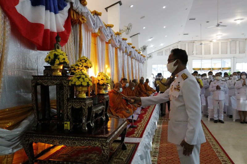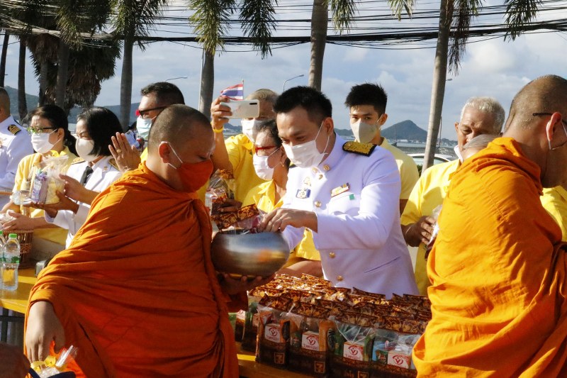 โดยพิธีเริ่มตั้งแต่เวลา 07.00 น. นายอำเภอสตหีบ เป็นประธานประกอบพิธีจุดธูปเทียน บูชาพระรัตนตรัย ถวายราชสักการะพระบรมฉายาลักษณ์ พระบาทสมเด็จพระปรเมนทรรามาธิบดีศรีสินทรมหาวชิราลงกรณ พระวชิรเกล้าเจ้าอยู่หัว เปิดกรวยกระทงดอกไม้ธูปเทียนแพ หน้าพระฉายาลักษณ์สมเด็จพระเจ้าอยู่หัว พระภิกษุสงฆ์สวดเจริญพระพุทธมนต์เฉลิมพระเกียรติ จากนั้นนำข้าราชการ พ่อค้า ประชาชนร่วมพิธีทำบุญใส่ตักบาตรข้าวสารอาหารแห้งแด่พระสงฆ์ ก่อนร่วมกันลงนามถวายพระพร