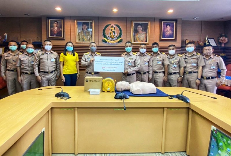 พร้อมมีการสาธิตวิธีการใช้งานโดยนางสาวเพ็ญธร เกิดช้ำ กรรมการผู้จัด การ บริษัท โพรสเพอรัส จำกัด ตัวแทนจำหน่ายเครื่อง HeartSine AED ณ ห้องประชุมกองบังคับการ กรมแพทย์ทหารเรือ 1 กรมแพทย์ทหารเรือ กรุงเทพมหา นคร เมื่อวันที่ 4 สิงหาคม 2563