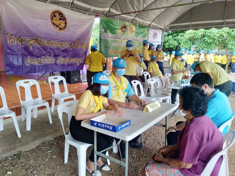 นายนาวิน สังฆมาตร นายอำเภอวังโป่ง ร่วมกับหัวหน้าส่วนราชการ องค์กรปกครองส่วนท้องถิ่น ผู้นำท้องที่ จิตอาสาพระราชทาน และประชาชน ดำเนินการจัดกิจกรรมจิตอาสา “ชีวิตวิถีใหม่ใต้ร่มพระบารมี…เราสร้างไปด้วยกัน ” เนื่องในโอกาสวันเฉลิมพระชนมพรรษาพระบาทสมเด็จพระวชิรเกล้าเจ้าอยู่หัว 28 กรกฎาคม 2563 เพื่อช่วยเหลือและบรรเทาความเดือดร้อนให้แก่ประชาชน ซึ่งได้รับผลกระทบทางด้านเศรษฐกิจและสังคมจากสถานการณ์การแพร่ระบาดของโรคติดเชื้อไวรัสโคโรนา 2019 (COVID-19) เพื่อสร้างความเข้มแข็งที่จะดำรงชีวิตอยู่ได้ในแบบชีวิตวิถีใหม่ (New Normal) โดยการบูรณาการทุกภาคส่วน ผลการปฏิบัติงานออกหน่วยให้บริการงานในหน้าที่ การบริการทางด้านสาธาณสุข การให้คำปรึกษาและความรู้ทางด้านการเกษตร บริการจัดเก็บภาษี การบริการให้คำปรึกษาและแก้ไขปัญหาความเดือดร้อนของประชาชน การสอนวิชาชีพต่างๆ และงานบริการด้านปศุสัตว์ เป็นต้น ณ วัดป่ าไพศาล(วัดวังศาล) หมู่ที่ 2 ตำบลวังศาล อำเภอวังโป่ง จังหวัดเพชรบูรณ์