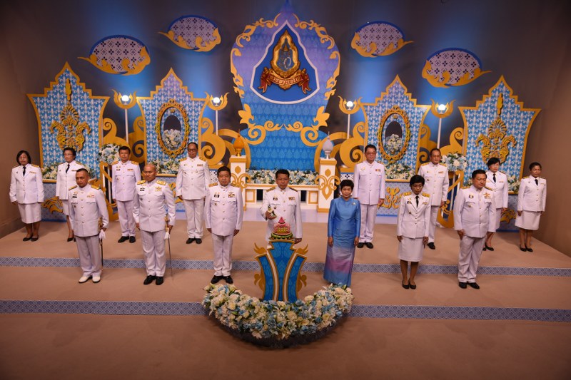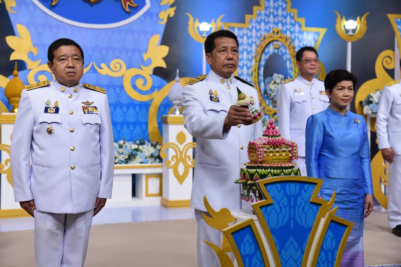 การแต่งกาย ข้าราชการพลเรือน ทหาร ตำรวจเครื่องแบบปกติขาว ไม่สวมหมวกประดับ เข็มที่ระลึกเฉลิมพระเกียรติพระบาทสมเด็จพระเจ้าอยู่หัว เนื่องในโอกาสมหามงคล พระราชพิธีเฉลิมพระชนมพรรษา 5 รอบ 28 กรกฎาคม 2555 เข็มที่ระลึกตราสัญลักษณ์พระราชพิธีบรมราชาภิเษกพุทธศักราช 2562 และเข็มที่ระลึกเฉลิมพระเกียรติสมเด็จพระนางเจ้าสิริกิติ์ พระบรมราชินีนาถ เนื่องในโอกาสพระราชพิธีมหามงคลเฉลิมพระชนมพรรษา 7 รอบ 84 พรรษา, จิตอาสาพระราชทาน : : ชุดจิตอาสาพระราชทาน, ประชาชน :: ชุดสุภาพ โทนสีฟ้า ผู้ร่วมพิธีทุกคนสวมหน้ากากอนามัยสีขาว หรือหน้ากากผ้าสีขาวตลอดการเข้าร่วมพิธีหรือร่วมกิจกรรม (ภาพจากแฟ้มภาพ)