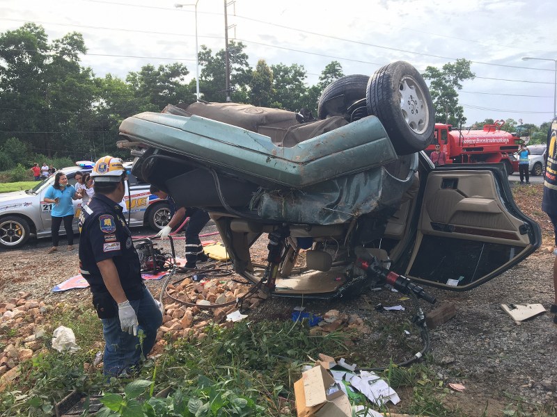 ไปถึงที่เกิดเหตุพบรถยนต์เก๋ง ยี่ห้อ เมอร์เซเดซ เบนซ์ สีเขียว หมายเลขทะเบียน ธม 7383 กรุงเทพมหานคร เสียหลักหงายท้องล้อชี้ฟ้า สภาพรถพังยับเยิน ชิ้นส่วนกระจายเกลื่อน ภาย ในตัวรถ พบศพผู้เสียชีวิต เจ้าหน้าที่กู้ภัยจึงช่วยกันใช้อุปกรณ์ตัดถ่างเพื่อนำศพออกมา ทราบชื่อในเวลาต่อมาว่า นายพงษ์ภีระ ขันนาค อายุ 36 ปี เป็นบุตรชายเจ้าของบริษัทตรวจสภาพรถในอำเภอคลองใหญ่