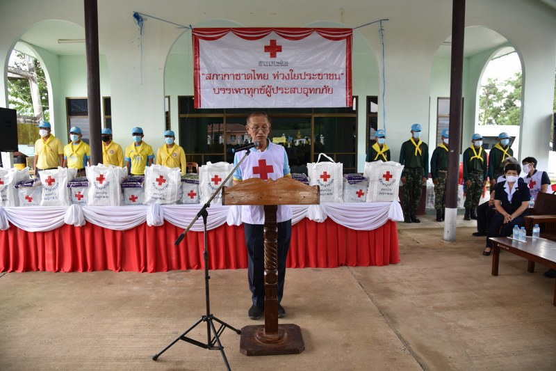 บ่ายวันนี้ ( 17 ส.ค.63 ) ที่หอประชุมเทศบาลมะขาม อำเภอมะขาม จังหวัดจันทบุรี พลโทนายแพทย์อำนาจ บาลี ผู้อำนวยการสำนักงานบรรเทาทุกข์และประชานามัยพิทักษ์ สภา กาชาดไทย พร้อมคณะได้เดินทางมามอบถุงยังชีพชุดธารน้ำใจโดยสภากาชาดไทย ในพื้นที่อำเภอมะขาม 250 ชุด และอำเภอเมือง 100 ชุด รวม ปลอบขวัญ ให้กำลังใจ ผู้ได้รับผลกระทบจากสถานการณ์น้ำป่าไหลหลากเมื่อวันที่ 13 – 14 สิงหาคม ที่ผ่านมา โดย นางวาสนา วงศ์ตระกูล รองนายกเหล่ากาชาดจังหวัดจันทบุรี รักษาการนายกเหล่ากาชาดจังหวัดจันทบุรี พร้อมด้วย และ นายชวนินทร์ วงศ์สถิตจิรกาล ปลัดจังหวัดจันทบุรีนำหัวหน้าส่วนราชการคณะกรรมการเหล่ากาชาดร่วมให้กำลังใจ ปลอบขวัญผู้ประสบอุทกภัย