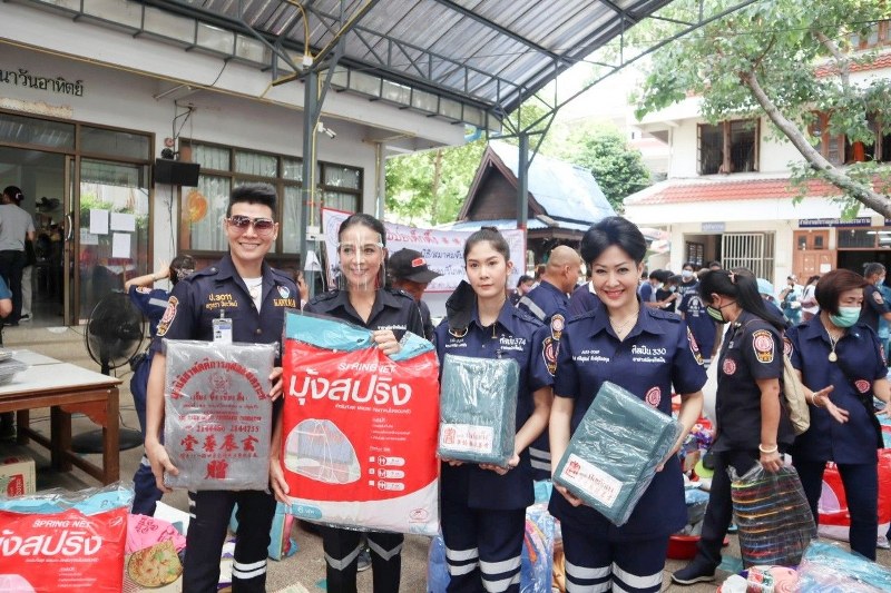 โดยมีอาสาสมัครกิตติมศักดิ์ นำโดย ดร.ปภัสรา เตชะไพบูลย์, นางศิริพร โอภาสวงศ์, นางศิริวรรณ โอภาสวงศ์, และอาสาสมัครศิลปิน นำโดย นายปิยะวัฒน์ รัตนหรูวิจิตร ศิลปิน 11, นาง สาวศศิสุกัลย์ สันต์สุขิตสกุล ศิลปิน 330, นางสาวอธิชา เทศขำ ศิลปิน 374 ร่วมแจกจ่ายเครื่องอุปโภค-บริโภค พร้อมด้วย นางสาวกนกวรรณ เอี่ยมลิ้ม ผู้อำนวยการเขตธนบุรี, สมาคมจีนต่างๆ, มูลนิธิพุทธสมาคมปทุมรังษี, มูลนิธิไกรสิทธิการกุศล, มูลนิธิส่งเสริมวัฒนธรรม, และมูลนิธิร่วมกุศลสมุทรปราการ ร่วมให้ความช่วยเหลือ ณ บริเวณวัดสันติธรรมาราม เขตธนบุรี กรุงเทพฯ