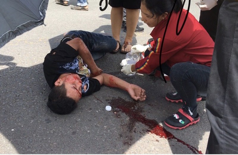 ไปถึงที่เกิดเหตุพบรจักรยานยนต์ทั้ง 2 คัน ล้มควํ่าอยู่กลางถนน ยี่ห้อ ฮอนด้า100 สีแดงดําหมายเลขทะเบียน ก.ท.ต. 125 ตราด สภาพรถได้รับความเสียหายนํ้ามันเครื่องรั่วไหล ได้ชนท้ายรถจักรยานยนต์ ยี่ห้อฟีโน่ สีฟ้าขาว หมายเลขทะเบียน ก.ธ.ว. 681 ตราด กระเด็นตกข้างถนน มีผู้ได้รับบาดเจ็บ 2 ราย ทราบชื่อ นายบุญชู บัวแก้ว อายุ 50 ปี 238 ม. 5 ต.หาดเล็ก อ.คลองใหญ่ จ.ตราด และนางวันดี บัวแก้ว อายุ 38 ปี 2 ผัวเมีย ได้รับบาดเจ็บถลอกตามร่างกาย ที่นั่งซ่อนท้ายมาด้วย ขณะเดียวกันยังพบผู้ได้รับบาดเจ็บ ขี่รถจยย.คู่กรณีที่ชนท้าย นอนหมดสติอยู่ในที่เกิดเหตุ ช่วยปฐมพยาบาลนานกว่า 30 นาทีจึงรู้สึกตัว อาการสาหัส ไม่ทราบชื่อ ทราบเพียงเป็นหนุ่มต่างด้าวชาวกัมพูชา