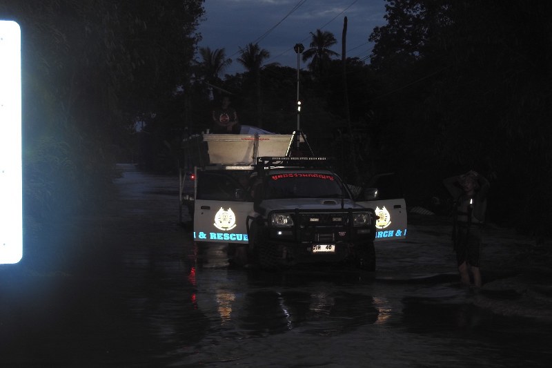 เมื่อ บิณฑ์ บรรลือฤทธิ์ เดินทางมาถึงได้ลงเรือท้องแบนพร้อมกับทีมมูลนิธิร่วมกตัญญู เข้าสำรวจพื้นที่ที่ถูกน้ำท่วมและช่วยเหลือสำหรับพื้นที่ตำบลคลองกระจง ได้ถูกน้ำท่วม 6 หมู่บ้าน และตำบลย่านยาว ซึ่งเป็นพื้นที่ติดต่อกันก็ถูกน้ำท่วมเช่นกัน ส่วนระดับน้ำในแม่น้ำยมหน้าจุดวัดน้ำหน้าสถานีดับเพลิงเทศบาลเมืองสวรรคโลก ระดับน้ำอยู่ที่10.64 เมตร ลดลงจากเดิม 2 เซนติเมตร