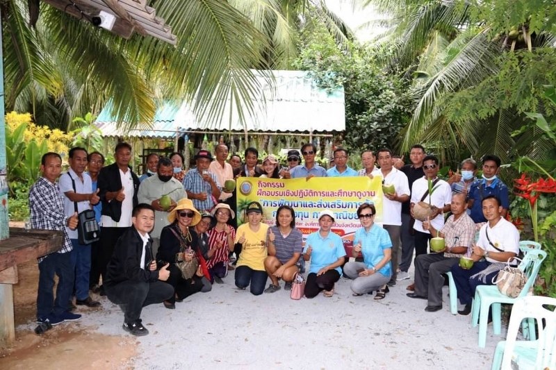 เป็นคณะทำงานจาก อบจ.นครพนม ประกอบด้วย สมาชิกองค์การบริหารส่วนจังหวัดฯ (ส.อบจ.ฯ), เกษตรอำเภอในแต่ละอำเภอ และหอการค้าจังหวัดนครพนม รวม 60 ชีวิต ถือว่าการศึกษาดูงานครั้งแรก นั้นประสบความสำเร็จเป็นอย่างมาก เพราะหลังจากกลับมาก็เริ่มพลิกพื้นดินการเกษตรเตรียมลงมะพร้าวใหญ่ และมะพร้าวน้ำหอมกัน ดร.สมชอบ นิติพจน์ นายก อบจ.นครพนม จึงจัดกิจกรรมฝึกอบรมฯเป็นโครงการที่ 2 โดยนำคณะทำงาน อบจ.ฯส่วนหนึ่ง กับเกษตรกรผู้สนใจจะเปลี่ยนแปลงพฤติกรรมการทำเกษตรแบบสร้างรายได้อย่างยั่งยืน จำนวน 50 คน เดินทางไปศึกษาดูงาน การปลูกพืชเศรษฐกิจตัวใหม่ของจังหวัดนครพนม ในวันที่ 21-24 สิงหาคม 2563