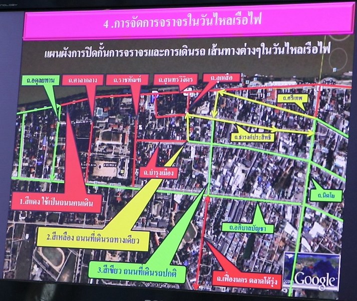นอกจากนี้ยังมีการวางแผนจัดชุดเคลื่อนที่เร็วทั้งทางบกและทางน้ำรองรับหากเกิดกรณีฉุกเฉินสำหรับผู้ป่วย มีสายตรวจเดินเท้าเพื่อคอยสอดส่องความปลอดภัยภายในงาน ด้านการจราจรก็มีการวางแผนรองรับนักท่องเที่ยวในพื้นที่และต่างพื้นที่ โดยแบ่งเป็น 3 โซนใหญ่ คือโซนที่ไม่ให้รถวิ่งผ่านเลย โซนรถวิ่งทางเดียวและโซนรถวิ่งปกติ 2 ทาง ส่วนสถานที่จอดรถมีการกำหนดจุดว่าตรงไหนสามารถจอดได้หรือจอดไม่ได้รวมถึงการหารถมาบริการเสริมหากจุดจอดห่างไกลบริเวณงานจนเกินไป ด้านการประชาสัมพันธ์ก็หาวิธีให้ผู้ที่มาชมความงดงามของเรือไฟได้ยินเสียงบรรยายตลอดแนวริมฝั่งแม่น้ำโขงที่จัดงาน โดยก่อนปิดการประชุมผู้ว่าราชการจังหวัดนครพนม ได้มอบหมายให้แต่ละหน่วยไปบูรณาการวางแผนร่วมกันในส่วนที่เกี่ยวข้องเพิ่มเติมที่ได้มีการวิเคราะห์ร่วมกัน พร้อมทั้งให้จัดทำแผนงานทั้งหมดมานำเสนอในการประชุมครั้งต่อไป