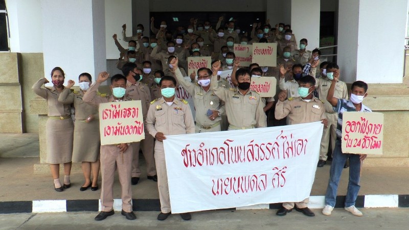 คืบหน้ากรณีมีกลุ่มนายกองค์การบริหารส่วนตำบล(อบต.) กำนัน ผู้ใหญ่บ้าน ผู้ช่วยผู้ใหญ่บ้าน สารวัตรกำนัน และสมาชิก อบต.(ส.อบต.) จาก 7 ตำบล 92 หมู่ของอำเภอโพนสวรรค์ จั.หวัดนครพนม ประมาณ 200 คน นำโดยนายกิติศักดิ์ จำปา กำนันตำบลบ้านค้อ/ประธานชมรมกำนันผู้ใหญ่บ้านอำเภอโพนสวรรค์ เดินทางมายื่นหนังสือร้องเรียนถึงนายสยาม ศิริมงคล ผู้ว่าราชการจังหวัดนครพนม ขับไล่นายนพดล ศิริ นายอำเภอโพนสวรรค์