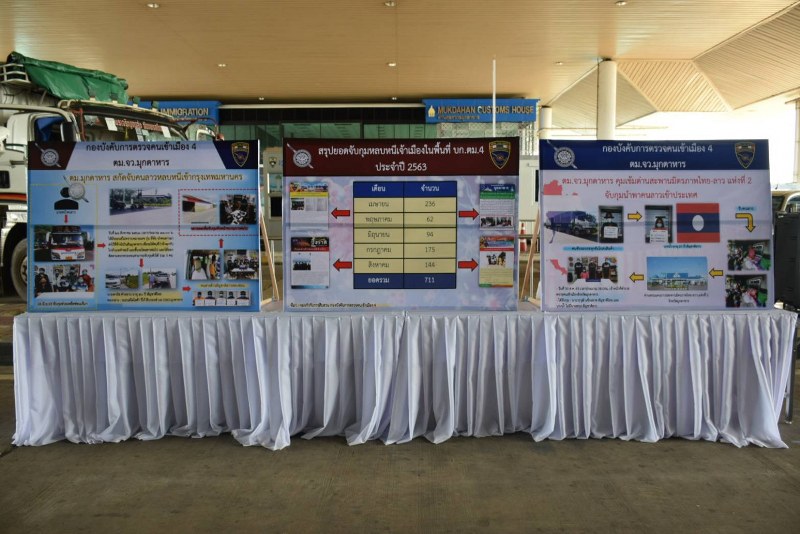 เมื่อวันที่ 1 กันยายน พล.ต.ท.สมพงษ์ ชิงดวง ผบช.สตม. พล.ต.ต.สุรพงษ์ ชัยจันทร์ รอง ผบช.สตม. และพ.ต.อ.พรรณศักดิ์ วรวิบูลย์สวัสดิ์ ผกก.ตม.จว.มุกดาหาร ร่วมกันแถลงข่าวผลการจับกุมคดีสำคัญ 2 คดี ที่บริเวณด่านสะพานมิตรภาพไทย-ลาว แห่งที่ 2 ดังนี้