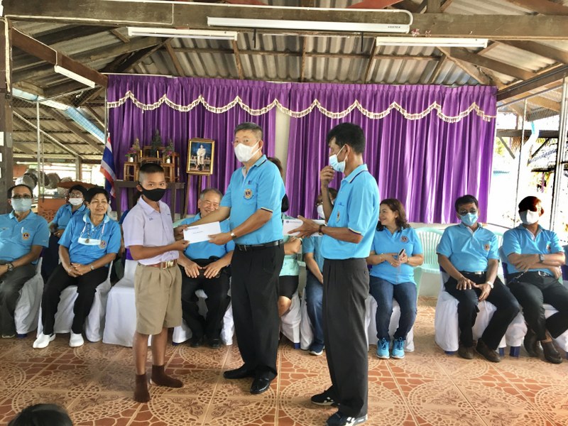 ตราด/สโมสรไลออนส์ตราด เลี้ยงอาหารกลางวันนักเรียนโรงเรียนวัดสะพานหิน พร้อมมอบทุนการศึกษาอุปกรณ์การกีฬาและมอบแผ่นปูนซีเมนปูพื้นทางเดินจำนวน 300 แผ่น