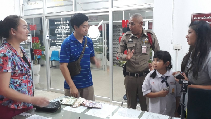 เมื่อมาถึงธนาคารไม่พบกระเป๋าเงินแล้ว จึงได้โทรศัพท์กลับไปที่ร้าน แจ้งว่าตนได้ทำกระเป๋าเงินตกหาย นายทรงวิทย์ เจ้าของร้านจึงได้พา นายขุนทอง ลูกจ้าง มาพบพนักงานสอบสวน เพื่อลงประจำวันไว้เป็นหลักฐาน ขณะที่ ร.ต.ต.นิคม สุขพ่วง เจ้าหน้าที่ประจำวันกำลังลงบันทึกอยู่นั้น ได้มี น.ส.ปิยะรัตน์ แซ่ปัง อายุ 30 ปี อยู่บ้านเลขที่ 146 ม.3 ต.กรอกสมบูรณ์ อ.ศรีมหาโพธิ จ.ปราจีนบุรี พร้อมด้วย ด.ญ.ญาณัจฉรา ธรรมพิชัย บุตรสาว อายุ 9 ปี เป็นนักเรียนชันประถมปีศึกษาที่ 4 โรงเรียนมัธยมวัดใหม่กรงทอง ซึ่งได้เดินทางเข้ามาที่ สภ.ระเบาะไผ่ เพื่อแจ้งว่าบุตรสาวของตนได้เก็บกระเป๋าเงินได้เป็นจำนวนมาก แต่ยังไม่ได้นับแต่อย่างใด จึงมาเพื่อขอลงบันทึกประจำวันเพื่อส่งคืนเจ้าของ