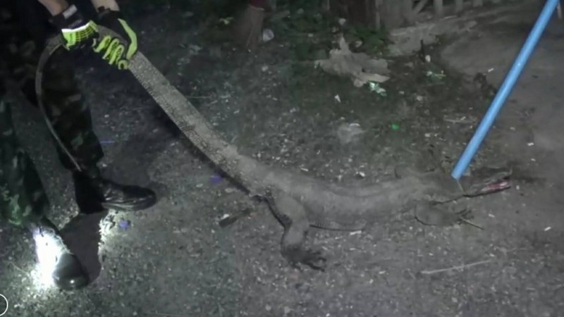 พบว่าเป็นตัวเหี้ยขนาดใหญ่ น้องๆจระเข้ มีความยาวประมาณเมตรกว่า น้ำหนักประมาณสี่สิบกว่ากิโล เจ้าหน้าที่กู้ภัยจึงได้ทำการมัดแขนและขาพร้อมได้นำขึ้นรถกู้ภัยฯเพื่อนำไปปล่อยยังแหล่งธรรมชาติต่อไป