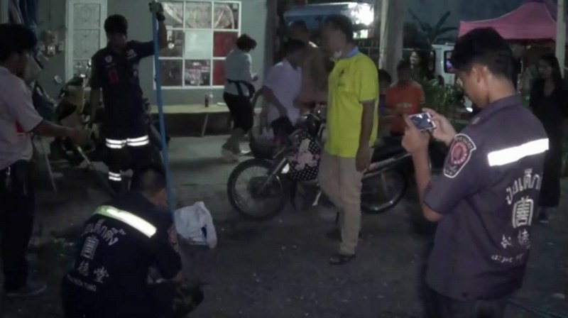พบว่าที่บ้านพักมีผู้ป่วยติดเตียงนอนอยู่ในบ้านและมีเด็กเล็กหลายคนออกมายืนอยู่ที่บริเวณหน้าบ้านพักด้วยความตกใจกลัว เจ้าหน้าที่กู้ภัยฯจึงเข้าไปในด้านตัวบ้านเปิดประตูด้านข้างที่ติดกับผู้ป่วยติดเตียงนอนอยู่พบตัวเหี้ยตัวใหญ่กำลังเกาะกำแพงปูนอยู่ เจ้าหน้าที่กู้ภัยต้องระมัดระวังเพราะตัวเหี้ยมีอาการดุร้ายต้องใช้อุปกรณ์ที่นำมาค่อยๆคล้องคอตัวเหี้ยและเกรงว่าตัวเหี้ยจะใช้หางตวัดตีทำรายเจ้าหน้าที่กู้ภัยฯได้ จึงได้รีบคล้องคอแล้วให้เพื่อนทีมงานเข้าจับที่หางตัวเหี้ยแล้วรากออกมาผ่านทางห้องผู้ป่วยติดเตียง