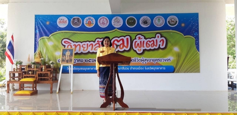 เมื่อวันที่ 12 กรกฎาคม 2562 เวลา 09.00 น. ที่วิทยาลัยชุมชนมุกดาหาร ต.นาสีนวน อ.เมือง จว.มุกดาหารนางไพวรรณ พลวัน อธิบดีกรมกิจการผู้สูงอายุ เป็นประธานพิธีเปิดโครงการเพิ่มศักยภาพคนมุกดาหารให้ก้าวทันยุคไทยแลนด์ 4.0 วิทยาลัย ฒ ผู้เฒ่า กลไกการพัฒนาผู้สูงอายุครบวงจร โดยมี นายชยันต์ ศิริมาศ ผู้ว่าราชการจังหวัดมุกดาหาร พร้อมด้วย นายศศิพงษา จันทรสาขา หัวหน้าส่วนราชการ ภาคเครือข่าย อปท. รพ.สต. และผู้สูงอายุทั้ง 7 อำเภอ จำนวนกว่า 600 คน เข้าร่วมงานในครั้งนี้