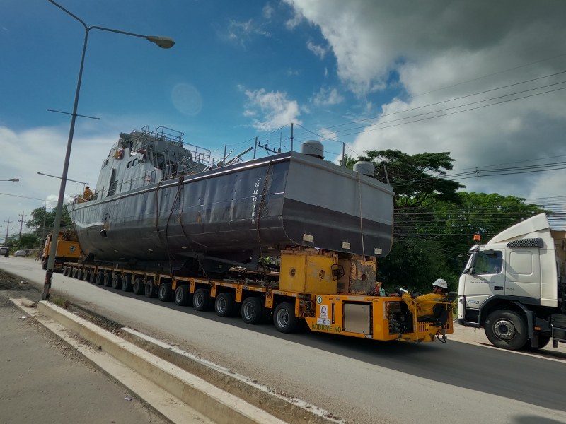 ชาวบ้านแห่เก็บภาพเรือของพ่อ แล่นบนถนนก่อนนำไปตั้งยังอุทยานประวัติศาสตร์