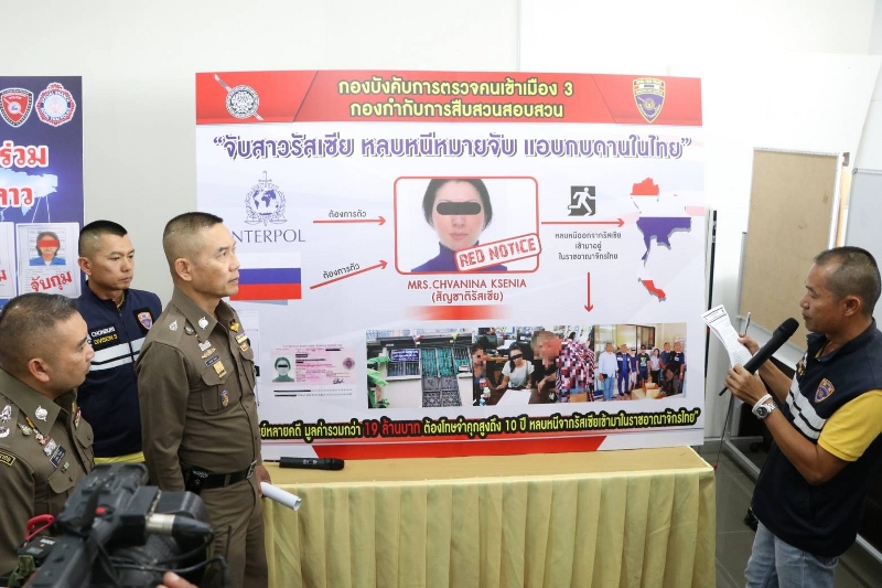 ร่วมแถลงข่าวผลการจับกุมคดีคนร้ายซึ่งมีหมายจับ ด้วยเมื่อวันที่ 8 ก.ค.62 กองกำกับการสืบสวนสอบสวน กองบังคับการตรวจคนเข้าเมือง 3 ได้รับทราบข้อมูลทางการข่าวจากสถานเอกอัครราชทูตรัสเซียประจำประเทศไทยว่าพลเมืองรัสเซีย ชื่อ MS.KSENIA เป็นบุคคลซึ่งก่อคดีฉ้อโกงที่ประเทศรัสเซียและได้หลบหนีคดีมากบดานอยู่ในประเทศไทย