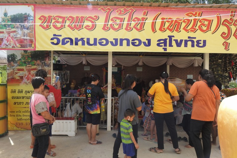 นอกจากนี้ชาวบ้านที่เดินมายังวัดหนองทองยังได้กราบไหว้ขอพรกุมารไอ้ไข่(เหนือ) ทำให้บรรยากาศภายในวัดหนองทอง บรรยากาศเป็นไปอย่างคึกคัก โดยชาวบ้านส่วนใหญ่ที่เดินทางมาจะขอพรเรื่องหน้าที่การงาน ค้าขาย และโชคลาภ โดยเฉพาะเรื่องโชคลาภและไม่พลาดส่องเลขหางประทัดที่ติดอยู่ที่ติดกุมารไอ้ไข่(เหนือ) คือเลข 47 และ 650 และส่องเลขทะเบียนของเล่นคันใหญ่ที่มีชาวบ้านนำมาถวายคือหมายเลขทะเบียน กก 3189 กรุงเทพ มหานคร เพื่อนำไปซื้อล็อตเตอร์รี่งวดวันที่ 1 ตุลาคม 2563 ซึ่งที่มาก็มีชาวบ้านได้รับโชคทั่วหน้าซึ่งดูได้จากขวดน้ำแดงที่วางเรี่ยงรายรอบศาลนับหมื่นขวด รวมทั้งพวงมาลัย ชุดทหาร และของเล่น ที่ชาวบ้านนำมาไหว้และแก้บนกับกุมารไอ้ไข่(เหนือ)