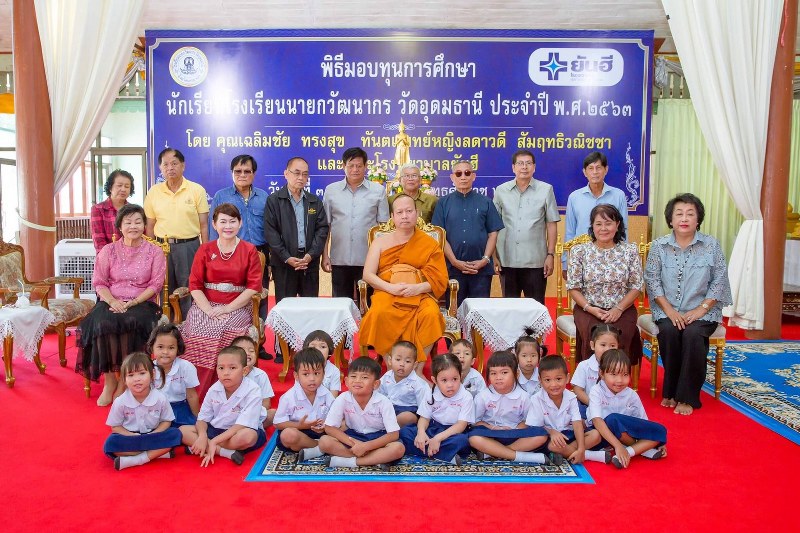 ที่วัดอุดมธานี พระอารามหลวง ตำบลบ้านใหญ่ อำเภอเมือง จังหวัดนครนายก พระเดชพระคุณ พระครูปริยัติโพธิสุนทร เจ้าคณะอำเภอเมืองนครนายก เจ้าอาวาสวัดอุดมธานี พระอารามหลวง เป็นประธานสงฆ์ ทันตแพทย์หญิง ลดาวดี สัมฤทธิวณิชชา รองผู้บริหารโรงพยาบาลยันฮี เป็นผู้แทน นายเฉลิมชัย ทรงสุข ศิษย์เก่าอาวุโสโรงเรียนนายกวัฒนากร วัดอุดมธานี ในพิธีมอบทุนการศึกษา แด่นักเรียนโรงเรียนนายกวัฒนากร วัดอุดมธานี ประจำปี 2563 จำนวนทั้งสิ้น 173 คน เป็นเงิน 162,000 บาท