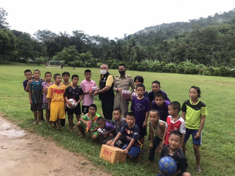 พร้อมมอบเครื่องดื่มบำรุงกำลังให้ชาวบ้านป่าหมากที่ช่วยพัฒนาตัดหญ้ากิ่งไม้ ถนนสู่บ้านป่าหมาก และมอบอาหารแห้งและน้ำดื่ม จากบริษัทอีซูซุอึ้งง่วนไต๋ปราณบุรี ให้แก่ นายจ๊ะกี้ ใจเย็น อายุ 75 ปี หมู่ 8 บ้านป่าหมาก ตำบล ศาลาลัย อำเภอสามร้อยยอด จังหวัดประจวบคีรีขันธ์ ซึ่งในบ้านมีผู้ป่วยติดเตียงและลูกหลานอาศัยหลายคน