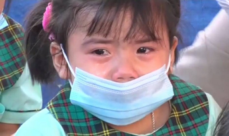 จนเวลาล่วงเลยเกือบ 10.30 น. ก่อนปิดพิธีนายจำเริญ สละชีพ นายกเทศมนตรีเมืองลพบุรี ซึ่งประธานในพิธีกล่าวได้ขึ้นกล่าวโอวาทแก่นักเรียน ได้เกิดความวุ่นวายขึ้นอีกครั้ง ไม่รู้ว่าประธานในพิธีกล่าวให้โอวาท นานไปหรือเปล่า น้องๆ ก่อนอนุบาล และอนุบาล ต่างร้องไห้กระจองอแงหลายคน เมื่อเพื่อนๆ เห็นต่างร้องให้ตามกันเสียงสะอึกสะอื้นระงม จนคุณครูปะเหลาะไม่ไหว จนประธานในพิธีเกิดความสงสารเลยต้องขอยุตติการกล่าวโอวาทเอาแต่พอสังเขปพอเข้าใจ และหยุดกล่าวโอวาทลงทันที เพื่อไม่ให้เหตุการณ์บานปลาย ลุกลามไปมากกว่านี้ หลังจากนั้นน้องๆ ต่างวิ่งโผเข้ากอดผู้ปกครอง และครูพี่เลี้ยงด้วยความไร้เดียงสา