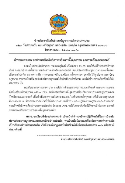 บช.น. ขอเรียนพี่น้องประชาชนว่า เจ้าหน้าที่ตำรวจยังคงปฏิบัติหน้าที่ในการป้องกันปราบปรามอาชญากรรมและยาเสพติดอย่างเคร่งครัด พบเห็นหรือมีเบาะแสเกี่ยวกับการกระทำความผิด เกี่ยวกับการจำหน่ายยาเสพติด หรือสิ่งของผิดกฎหมายในโซเชียลมีเดียโปรดแจ้งสายด่วน 191 หรือสถานีตำรวจท้องที่