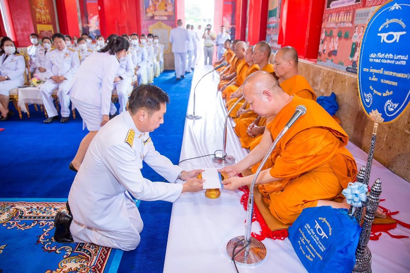 - ต่อมาประธาน พร้อมผู้บริหารบริษัท ทีโอที จำกัด (มหาชน) ถวายจตุปัจจัยไทยธรรมแด่พระสงฆ์