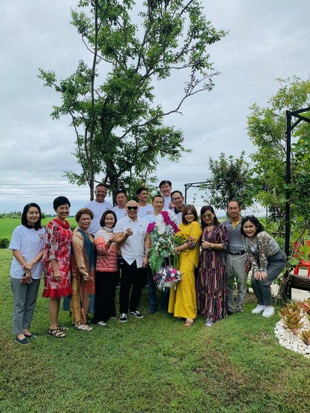 พล.ต.ท.รัฐพงษ์ ยิ้มใหญ่ (อดีตจเรตำรวจแห่งชาติ) ท่ามกลางแขกผู้มีเกียรติที่มาร่วมงานพิธีสงฆ์ พร้อมเปิดฟาร์ม และร่วมแสดงความยินดีกันมากมาย ภายในงานได้จัดเลี้ยงแบบบุฟเฟ่ มีทั้ง ขนมจีน4ภาค น้ำพริกปลาทูแม่กลอง หมูหัน กบินทร์บุรี ข้าวเกรียบปากหม้อ สาคู โดยเฉพาะ โหน่ง ช่าช่าช่า ได้เดินชิม ข้าวเกรียบปากหม้อแล้วชมว่าอร่อยเหมือนเดิมพร้อมยกนิ้วให้