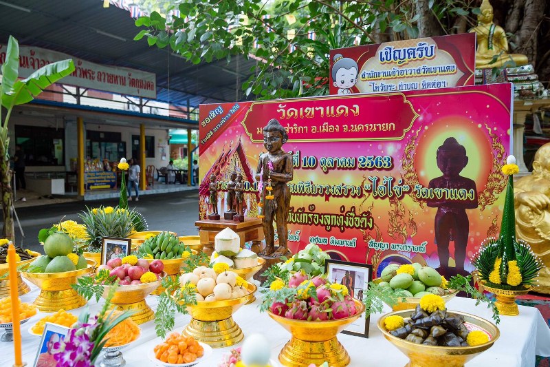 เมื่อเวลา10.10 น. (10 ต.ค.63) ผู้สื่อข่าวรายงานว่า นายสดใส รุ่งโพธิ์ทอง, นายสัญญา พรนารายณ์, และทศพล หิมพานต์ สามนักร้องลูกทุ่งชื่อดัง ที่มีความเชื่อและความศรัทธาไอ้ไข่ซึ่งเป็นเทพเจ้าแห่งโชคลาภและทำการค้าขายจะมีแต่ความเจริญรุ่งเรืองที่ทุกคนรู้จักกันดีโดยได้นำเอาไอ้ไข่จากแดนใต้ที่แกะมาจากไม้ขนุนโดยมีขนาดความสูงประมาณ1เมตรเศษมาถวายพระครูรัตตคีรีรักษ์ เจ้าอาวาสวัดเขาแดง ต.สาริกา อ.เมือง จ.นครนายก ท่ามกลางความตื่นเต้นและดีใจของชาวบ้านอย่างมาก