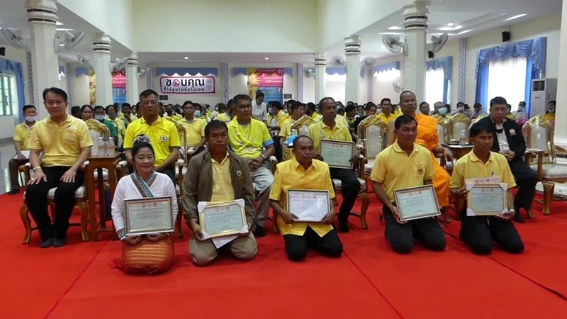 ที่ศาลาวัดเขาแก้วศรีสมบูรณ์ ต.เขาแก้วศรีสมบูรณ์ อ.ทุ่งเสลี่ยม จ.สุโขทัย นายปรีชา สุทนต์ นายอำเภอทุ่งเสลี่ยม พร้อมด้วย พระครูสุมณฑ์ธรรมธาดา ผู้ประสานงานเครือข่ายองค์กรงดเหล้าจ.สุโขทัย ประกอบพิธี มอบเกียรติบัตรและเข็มเชิดชูเกียรติให้กับผู้เข้าร่วมกิจกรรม ช่วย ชม เชียร์ให้งดเหล้าเข้าพรรษา 3เดือน มีผู้เข้าร่วมกิจกรรมกว่า 300 คน