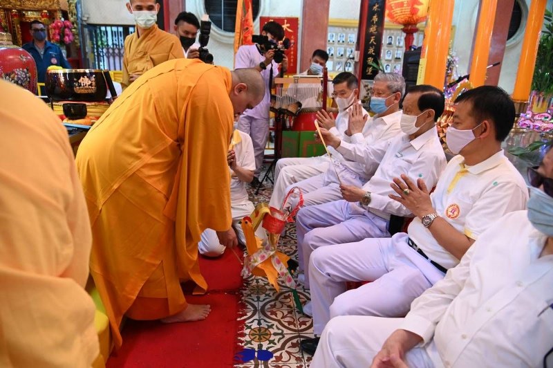 วันนี้ (16 ตุลาคม 63) นายวิเชียร เตชะไพบูลย์ ประธานกรรมการ มูลนิธิป่อเต็กตึ๊ง เป็นประธานในพิธี พร้อมด้วย นายจารุรัตน์ คุณัตถานนท์ กรรมการและรองเลขาธิการ นางจินดา บุญลาภทวีโชค กรรมการและเหรัญญิก คณะกรรมการ และผู้ช่วยกรรมการมูลนิธิฯ ผู้บริหาร ศิษยานุศิษย์และสาธุชน ร่วมในพิธีอัญเชิญกิ๊วอ๊วงฮุกโจว (เทพเจ้า 9 องค์ หรือนัยหนึ่ง คือ ดาวพระเคราะห์ทั้ง 9 ดวง) เปิดมณฑลพิธีงานเทศกาลกินเจ ประจำปี 2563 โดยคณะสงฆ์อนัมนิกาย วัดอุทัยราชบำรุง ภายในศาลเจ้าไต้ฮงกง มูลนิธิป่อเต็กตึ๊ง พลับพลาไชย