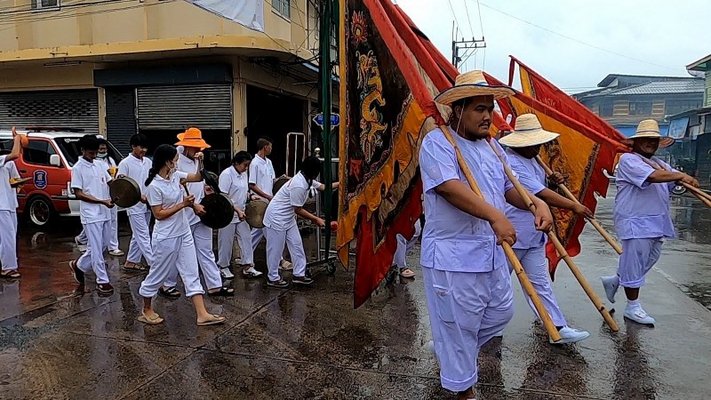 เมื่อเวลา 14.30 น. ของวันนี้ 16 ต.ค. 63 นายณรงค์ บุญบรรเจิดศรี ประธานมูลนิธิสว่างโรจนธรรมสถาน พร้อมด้วยคณะกรรมการ และผู้ที่ถือศีลกินเจ ในพื้นที่อำเภอสัตหีบ จังหวัดชลบุรี และใกล้เคียง ได้นำกระถางธูปที่ประทับของเทพเจ้าทั้ง 7 โดยมีขบวนผู้ถือศีลกินเจแห่ไปโดยรอบตลาดสัตหีบ โดยมีขบวนมังกร เพื่อมาจุดบริเวณสถานที่ประกอบพิธี ณ ถนนชาย ทะเล, หน้าที่ว่าการที่ดิน อ.สัตหีบ จ.ชลบุรี เพื่ออัญเชิญเทพเจ้าทั้ง 7 มาประดิษฐาน ณ เซียนซือ มูลนิธิสว่างโรจนธรรมสถาน ท่ามสายฝนที่ตกลงมาอย่างต่อเนื่อง เพื่อผู้ที่เคารพนับถือได้กราบไหว้บูชา และร่วมถือศีลกินเจ ระหว่างวันที่ 16-26 ตุลาคม ตามความเชื่อที่ว่า เมื่อได้งดการกินเนื้อสัตว์แล้วจะเป็นการไม่เบียดเบียนสัตว์ เป็นการสร้างบุญ สร้างกุศลที่ยิ่งใหญ่ ตลอดจน ได้กราบไหว้บูชาเทพเจ้าทั้ง 7 แล้วจะทำให้เกิดความเป็นสิริมงคลแก่ชีวิต จึงทำให้ผู้ที่เลื่อมใสศรัทธาในการถือศีลกินเจเข้าร่วมกิจกรรมในวันนี้ด้วยเป็นจำนวนมาก สำหรับประชา ชนในพื้นที่สามารถมารับประทานอาหารเจฟรี ได้ตามวันเวลารับประทานอาหาร ในช่วงเทศกาลที่ศีลกินเจนี้