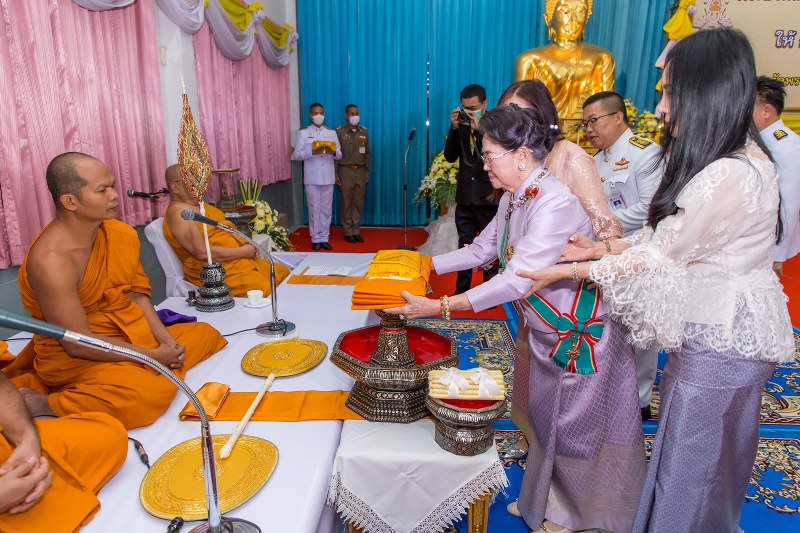 เมื่อเวลา 14.00 น.ของวันที่ 17 ตุลาคม 2563 ดร.พวงผกา ตั้งบรรยงค์ ประธานในพิธี ทำ ความเคารพ เปิดกรวยกระทงดอกไม้ธูปเทียนแพ หน้าพระบรมฉายาลักษณ์ฯ, หยิบผ้ากฐินพระราชทานอุ้มประคอง (วงดุริยางค์บรรเลงเพลงสรรเสริญพระบารมี)