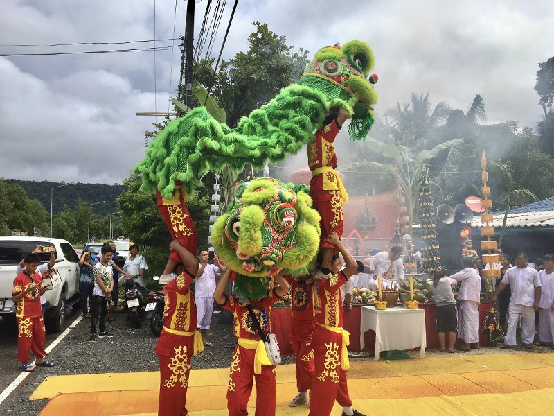โดยในพิธีมีการแสดงสิงโตจากเจ้าแม่ทับทิมคลองใหญ่ในแต่ละปีอีกด้วย พร้อมกันนี้ได้โปรยทาน จับของรางวัล เช่น ห้อมหุงข้าวไฟฟ้า พัดลม และเต่าแก๊สพร้อมด้วยวัตถุมงคลของท่านเจ้าอาสวัดห้วงโสมโดยมีประชาชน เข้าร่วมในพิธีกว่า 500 คนและร่วมกันโปรยทานอีกด้วย