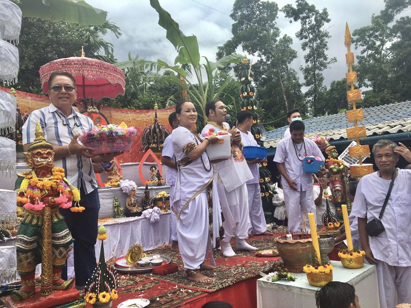 นายอนุสรณ์ ร่างทรง ได้กล่าวว่า ปีนี้ได้ตรงกับงานทอดกฐิณกันหลายแห่งจึงได้เลื่อนมาเป็นวันนี้ส่วนใหญ่จะจัดเดือนพฤศจิกายนแต่มีอุปสรรคหลายอย่าง จึงต้องจัดในเดือนนี้เท่าเสียว่าโดนฝนเต็มๆแต่ช่วงทําพิธีฝนหยุดตกทันทีเสร็จสิ้นฝนตกลงมาเป็นมหัศจรรย์จริงๆนายอนุสรณ์ร่างทรงยังได้กล่าวว่า ผู้ที่เข้ามารักษาไม่ได้เรียกร้องเงินทอง เพียงแต่ผู้รักษาจะบริจาคให้ ตามแต่ศรัทธา ไม่มีก็รักษาได้ ถือว่าเป็นร่างทรงมาช่วยคนทุกข์ยาก คนเดือดร้อน ในการประกอบพิธีไหว้ครูจะมีขึ้นทุกปี ในเดือนในแต่ละเดือนว่าจะตรงในเดือนไหน แต่ในเดือนนี้เป็นเดือนที่ฝนตกมากเลยที่ผ่านมา เพื่อแสดงถึงการเคารพบูชาและน้อมรําลึกพระคุณของร่างทรง ซึ่งเป็นประเพณีอันดีงามที่ปฎิบัติสืบทอดกันมาแต่สมัยโบราณ การจัดพิธีไหว้ครูบวงสวงเทพ ซึ่งมีผู้ที่นับถือเป็นจํานวนมากในแต่ละปีเข้าร่วมพร้อมด้วยโรงทานกว่า 20 โรงทานที่ร่วมสนุบสนุนเป็นประจําทุกปี