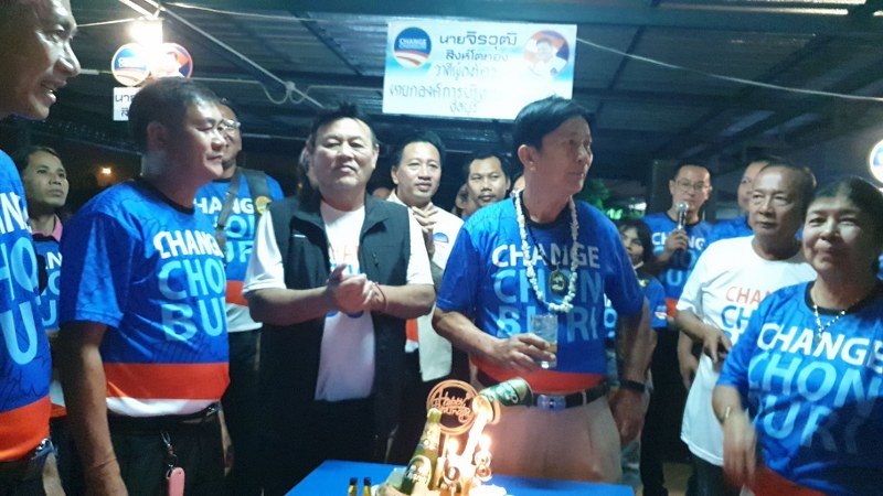 โดยมี สส.เป้า นายจิรวุฒิ สิงห์โตทอง หัวหน้ากลุ่มเชนจ์ชลบุรี ว่าที่ผู้สมัคร นายก อบจ.ชลบุรี พร้อมทีมงานว่าที่ผู้สมัคร ส.อบจ.ชลบุรี เดินทางมาร่วมงานกันอย่างคับคั่ง พร้อมทีมมอเตอร์ ไบค์พัทยา ตลอดจนผู้นำชุมชนและผู้กว้างขวางในพื้นที่ ที่มาร่วมงานในวันนี้ด้วย สส.เป้า ได้เป็นตัวแทนของผู้ร่วมงาน กล่าวคำอวยพร ให้กับเสี่ยเบิ้ม ที่อยู่เบื้องหลังกลุ่มเชนจ์ชลบุรี บรรยากาศเป็นไปด้วยความอบอุ่นและเป็นกันเอง ได้ใจเสี่ยเบิ้ม ไปเต็มๆ