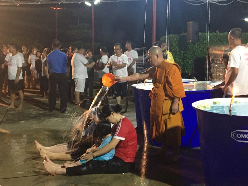 การอาบน้ำมนต์ในคืนวันเพ็ญนั้น ปกติในหนึ่งปีจะนิยมทำ ในวันเพ็ญเดือน ๑๒ แต่ที่พิเศษที่สุดคือการอาบน้ำมนต์น้ำเพ็ญในวันที่พระจันทร์เต็มดวง และมาตรงกันกับวันจันทร์ เรียกว่าจันทร์ซ้อนจันทร์ หากในเดือนใดปีใดที่มีจันทร์ซ้อนจันทร์เช่นนี้ถือว่าดีเป็นพิเศษ แต่ในปีนี้ตรงกับวันเสาร์ในคืนพระจันทร์เต็มดวง ซึ่งเป็นพิธีกรรมโบราณตั้งแต่สมัยสมเด็จพระนเรศวร ซึ่งจะอาบให้กับผู้ที่จะไปออกรบ เชื่อกันว่าช่วยล้างบาป เสริมเสน่ห์ เรียกงาน เงิน ความรัก เรียกสามี ซึ่งดาราศิลปินหลายๆ ท่านก็นิยมทำกัน เพื่อเรียกงาน บ้างก็ว่าทำแล้วได้งานตรึม และคืนนี้ปีนี้มีประชาชนในพื้นที่กว่า 500 คน ซึ่งเยอะกว่าทุกปีที่ผ่านมาโดยทางวัดหาดทรายแดงมีการจัดพิธีกรรมอาบนํ้าในคืนวันเพ็ญเดือน 12 ทุกปี