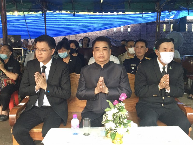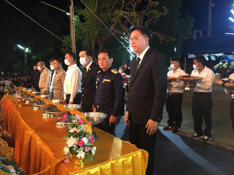 โดยมี นายภิญโญ ประกอบผล ผู้ว่าราชการจังหวัดตราด เป็นประธานในพิธี ทอดผ้าไตรบังสกุล และ พระบุรเขตธรรมรณรงค์เจ้าคณะจังหวัดตราด ประธานฝ่ายสงฆ์ พิจารณาผ้าไตรบังสุกุล วางดอกไม้จันทร์ ตามด้วยคณะสงฆ์ และสามเณร ตามด้วยนายพีระ การุญ นาย อําเภอคลองใหญ่ พร้อมหัวหน้าส่วนราชการทุกภาคส่วนและศิษยานุศิษย์ ตลอดจนพุทธศาสนิกชนที่เคารพศรัทธาร่วมพันคน ได้ทยอยเข้าร่วมวางดอกจันทร์ และรับวัตถุมงคลของท่านก๋งเตื่องเพื่อเป็นศิริมงคลและเป็นที่ยึดเหนี่ยวจิตใจอีกด้วย
