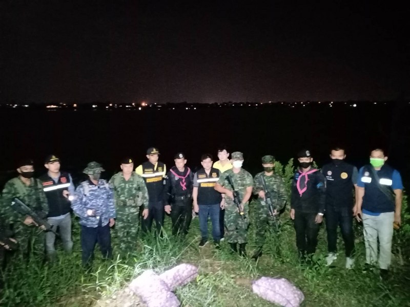 พบชายฉกรรจ์รับจ้างแบกสินค้าเถื่อน จำนวน 7-8 คนกำลังแบกกระสอบบรรจุกระเทียมขึ้นจากฝั่ง เห็นเจ้าหน้าที่ก็อาศัยความมืดและความชำนาญในพื้นที่วิ่งหลบหนีไปได้ เจ้าหน้าที่เข้าตรวจสอบพบกระสอบบรรจุกระ เทียมแห้งวางเกลื่อนริมตลิ่งริมฝั่งโขง ตรวจนับได้จำนวน 100 กระสอบ น้ำหนัก 2,000 กิโลกรัม ส่วนเรือหางยาวของเครือข่ายชาวลาวหลังขนข้ามมาส่งให้โดยไม่ผ่านพิธีการศุลกากรไม่ยอมเสียภาษีหันหัวเรือขับแล่นข้ามฝั่งสปป.ลาวไปทันที