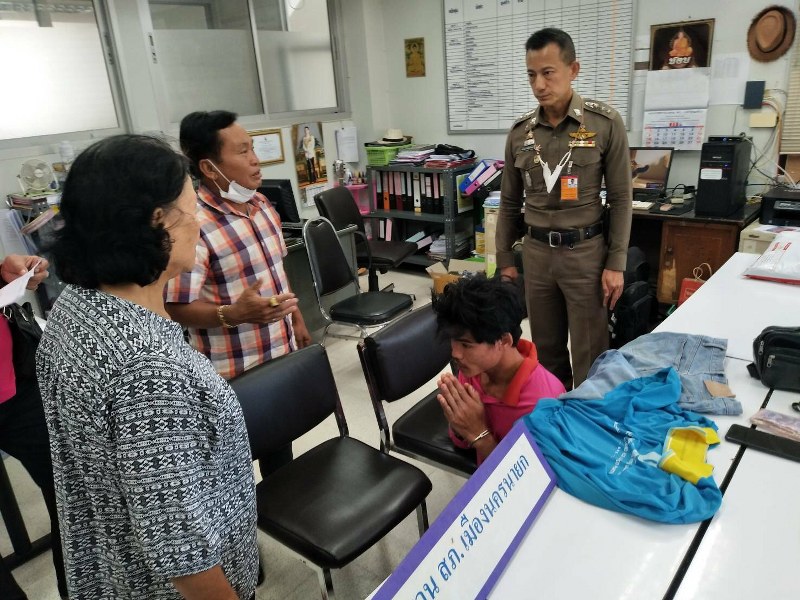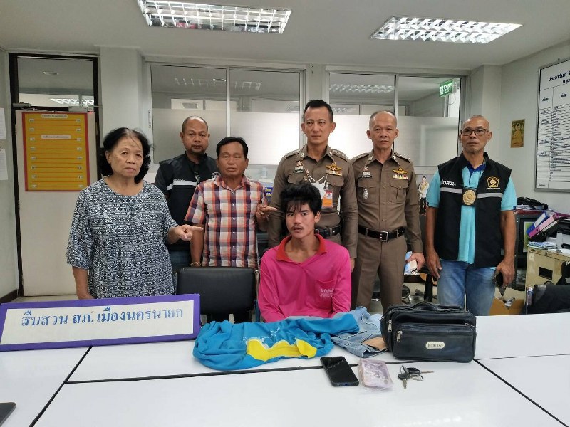 จากกรณีที่มีคนร้ายวิ่งเข้าไปลักทรัพย์ที่บ้านคุณยาย อรวรรณ หนูสว่าง อายุ 67 ปี ซึ่งเปิดเป็นร้ายค้าขายของชำได้เงินสดในกระเป๋าสีดำมีเงินสด 30000 บาท เจ้าหน้าที่ได้ตรวจกล้องวงจรปิดแถวแยกสัญญาณไฟพบตัวคนร้านได้ขับรถยนต์มาจอดไว้บริเวณแยกสัญญาณไฟหลังจากได้กระเป๋าเงินสดได้วิ่งหนีมาขึ้นรถมิตซูบิชิไทรทันสีดำ หมายเลขทะเบียน 1 ฒท 120 กรุงเทพมหานคร ขับหลบหนีขึ้นไปทางน้ำตกสาริกา เจ้าหน้าที่ตำรวจสายสืบจึงแกะลอยค้นหาและจับตัวคนร้านได้จึงได้นำตัวมาที่สถานีตำรวจภูธรเมืองนครนายก