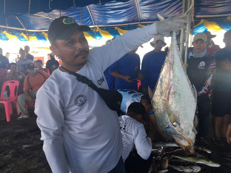 เมื่อช่วงบ่ายที่ผ่านมา วันที่ 8 พย 63 บ่ายวันนี้ ที่สะพานอเนกประสงค์อำเภอคลองใหญ่ นายอาภากร เจริญผล นายก อบต.คลองใหญ่ โดยมีคณะกรรมการ เป็นประธานการชั่งน้ำหนักปลา การแข่งขันกีฬาตกปลาตำบลคลองใหญ่ ที่สถานที่แข่งขันที่ทะเลอ่าวไทยแนวประการังคลองใหญ่ ประการังจารุวรรณ ประการังเจ๊กลัก ปะการังตาหนึก ปะการังกองสามร้อย ปะการังหว้งโสม และปะการังคลองตะเคียน หลังเปิดการแข่งขันเมื่อเช้าวันที่ 7 พย .ที่ผ่านมา โดยวันนี้เรือที่เข้าร่วมการแข่งขันทั้ง 46 ทีม ซึ่งแบ่งออกเป็น 2 รายการแข่งขัน ประเภทแข่งขันตกปลาบนท่าเทียบเรืออเนกประสงค์คลองใหญ่อีกจำนวน 55 ทีม รวมทั้งสิ้น 101 ทีม วันนี้ต่างนำเรือเข้าเทียบท่า และนำปลาที่ตกได้ ขึ้นท่าเรือ ส่งให้คณะกรรมการตัดสินการแข่งขัน ทำการแยกประเภทปลา และชั่งน้ำหนักปลา ซึ่งต้องใช้เวลาในการคัดแยกและชั่งปลานานกว่า 1-2 ชม. ก่อนรวบรวมผลการตัดสิน