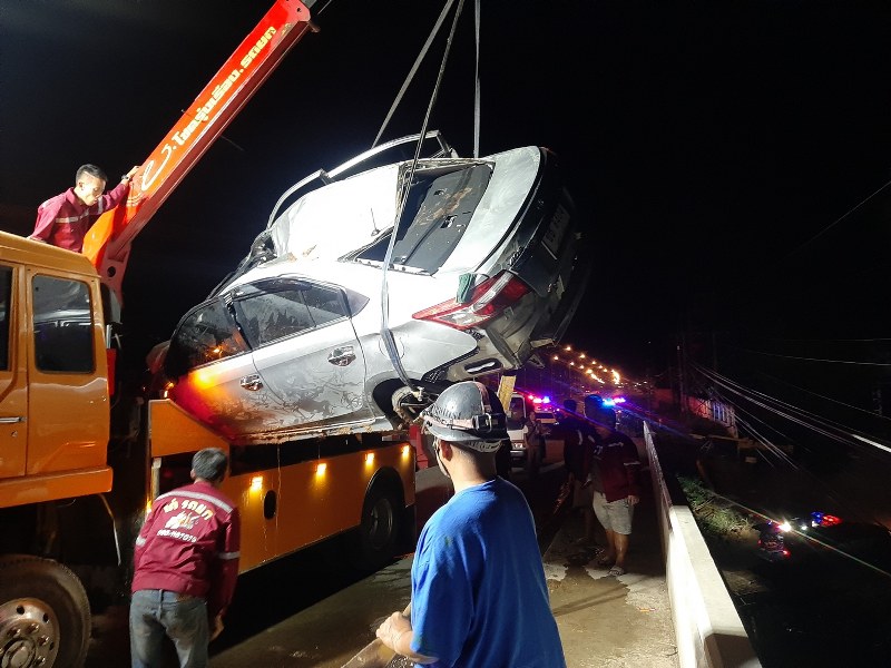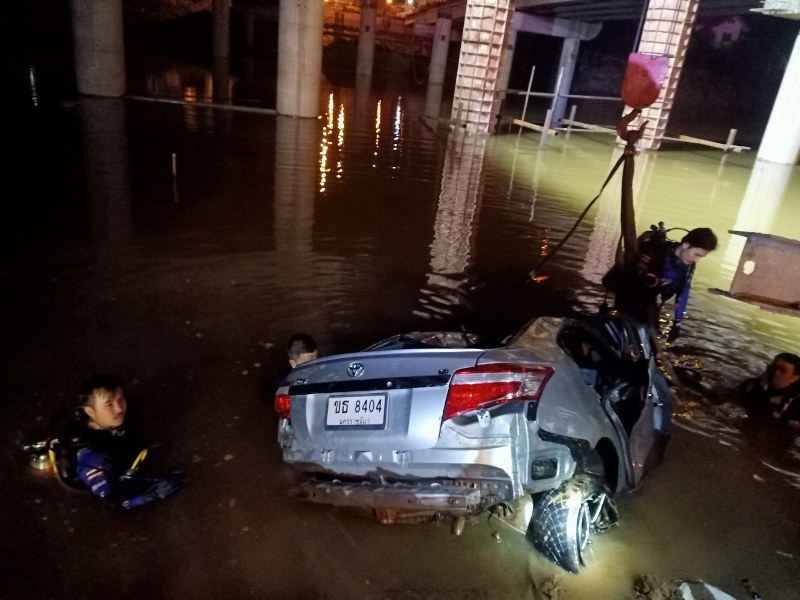 ที่เกิดเหตุที่สะพานข้ามแม่น้ำป่าสักฝั่งขาออกจากตลาดลำนารายณ์ซึ่งอยู่ในระหว่างการดำเนินการก่อสร้าง พบรถยนต์เก๋งยี่ห้อโตโยต้า รุ่นวีออส สีบรอนเงิน หมายเลขทะเบียน ขธ 8404 นครราชสีมา เสียหลักพรุ่งตกลงไปจมอยู่ในแม่น้ำป่าสักมิดทั้งคัน ชุดปฎิบัติการค้น หาใต้น้ำกู้ภัยพ้งไล้ ต้องช่วยกันเร่งในการค้นหาใต้น้ำ ก่อนพบรถเก๋งจมอยู่ใต้น้ำ จึงได้นำรถเครนยกรถขึ้นมาจากแม่น้ำในสภาพรถยนต์เก๋งด้านหน้าพังยับเยินจากร่องรอยเฉี่ยวชนแท่งบอริเอ่อ และได้รับความเสียหายรอบทั้งคัน