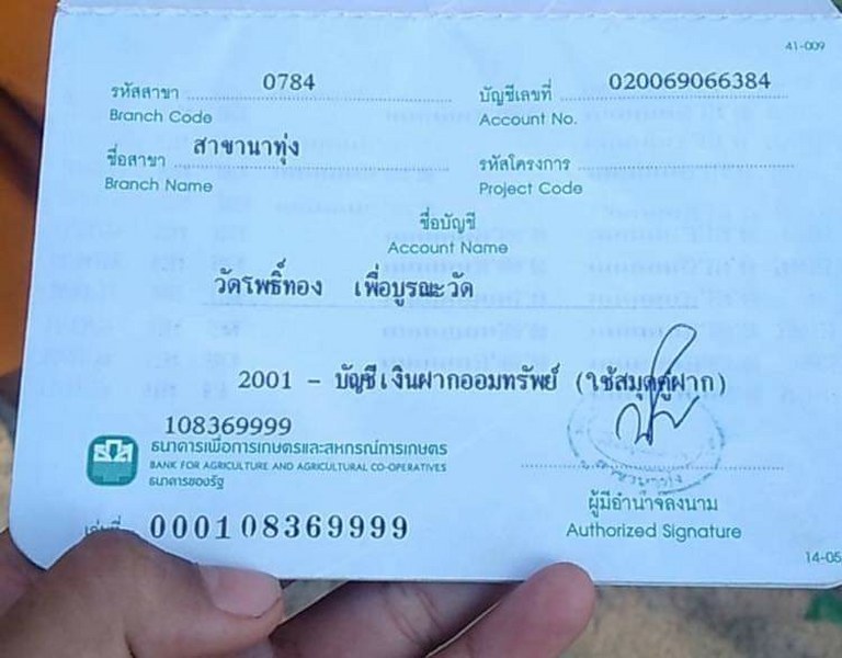สำหรับผู้ที่มีจิตใจบุญสามารถร่วมบุญ บูรณะกุฏิพระ วัดโพธิ์ทอง ได้ที่บัญชีธนาคาร เพื่อการเกษตรและ สหกรณ์การเกษตร(ธ.ก.ส) ชื่อบัญชีวัดโพธิ์ทองเพื่อบูรณะวัด เลขบัญชี 020069066384