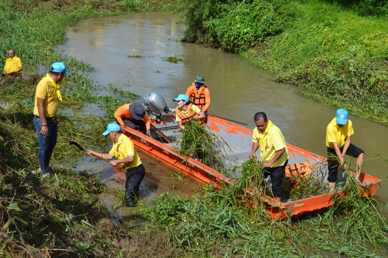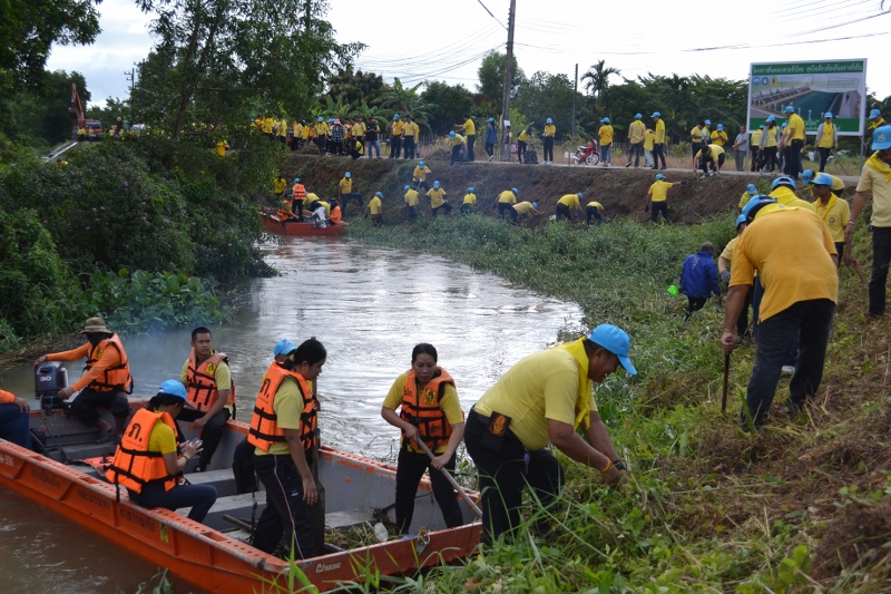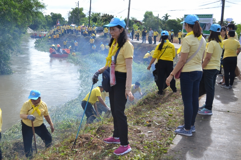 วันนี้ ( 20 ก.ค.62 ) ที่บริเวณริมคลองดาวเรือง หมู่บ้านเพชรดาวเรือง ม.11 ต.พลับพลา อ.เมือง จ.จันทบุรี นายวิทูรัช ศรีนาม ผู้ว่าราชการจังหวัดจันทบุรี ได้นำจิตอาสา ๙๐๔ วปร.พระราชทาน เรา…ทำความดีด้วยหัวใจ ร่วมกิจกรรมบำเพ็ญประโยชน์ เฉลิมพระเกียรติ เนื่องในโอกาส เฉลิมพระชนมพรรษา พระบาทสมเด็จพระวชิรเกล้าเจ้าอยู่หัวฯ 28 กรกฎาคม 2562 ตามโครงการ คลองสวยทั่วไทย สุขใจเที่ยวท้องถิ่นอย่างยั่งยืน ร่วมทำความสะอาด เปิดช่องทางการระบายน้ำ กำจัดวัชพืช และ ขยะ ป้องกัน แก้ไขปัญหาน้ำรอการระบาย น้ำท่วมในพื้นที่ตำบลพลับพลา และพื้นที่ใกล้เคียง พร้อมทั้งปรับภูมิทัศน์ 2 ข้างทางเพื่อเป็นสถานที่พักผ่อนหย่อนใจ ทั้งนี้คลองดาวเรืองถือเป็นเส้นทางน้ำสายหลักที่รับน้ำจากเขาสระบาป ก่อนลงสู่คลองภักดีรำไพ และไหลลงทะเล เส้นสายน้ำผ่านสวนผลไม้ของเกษตรกร และชุมชนหนาแน่น บางพื้นที่ตื้นเขินจากเศษดินทรายและวัชพืช การร่วมกันทำความสะอาดในครั้งนี้จะส่งผลให้มีพื้นที่กักเก็บน้ำเพื่อการเกษตรในฤดูแล้งเพิ่มขึ้น รวมทั้งเพิ่มช่องทางการระบายน้ำป้องกันแก้ไขปัญหาน้ำรอการระบาย น้ำท่วมซ้ำซาก ได้ระดับหนึ่ง