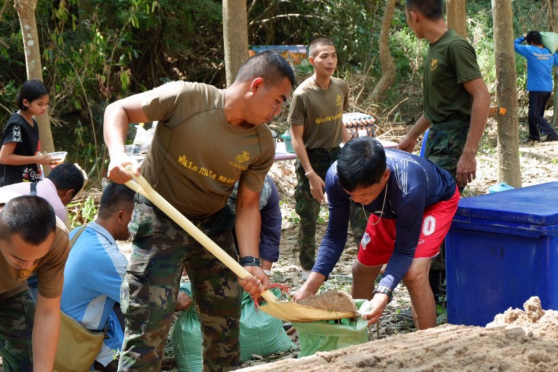 อบต.ขุนซ่อง อ.แก่งหางแมว จ.จันทบุรี รวมพลังทหาร ผู้นำชุมชน ท้องถิ่น ท้องที่ และชาวบ้าน สร้างฝายชะลอน้ำป้องกันภัยแล้ง น้อมนำแนวทางพระราชดำริโครง การ ปิดทองหลังพระ