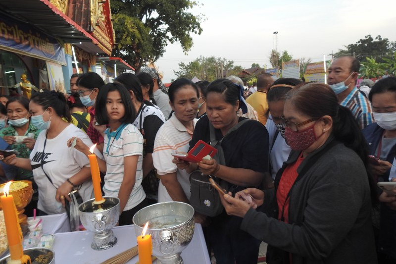 นอกจากนี้ชาวบ้านที่มาร่วมพิธียังได้นำโทรศัพย์มือถือไปถ่ายในขันน้ำมนต์เพื่อส่งเลขจากดอกน้ำมนต์เพื่อนำไปเสี่ยงโชคซื้อล็อตเตอร์รี่อีกด้วย
